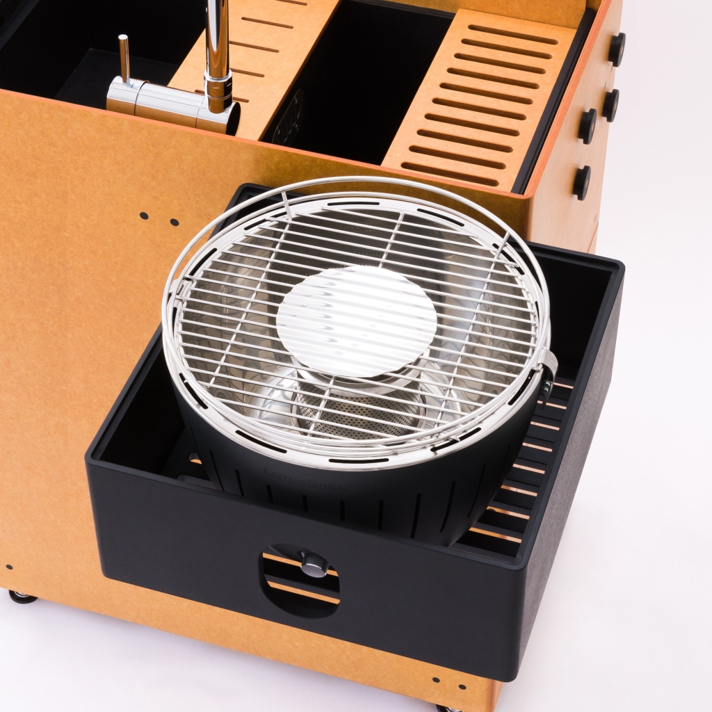 市販のバーベキューコンロを設置できるラックです。